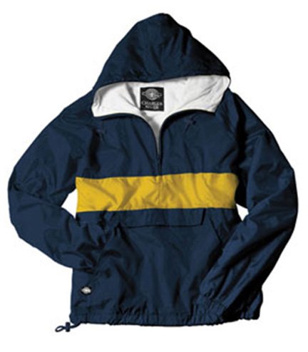 Athletic Rugby Classic CRS Pullover Jackets Details: Smart color combinations with an athletic rugby-inspired stripe make this the popular item on college university campuses. Wind and water-resistant River Tec Nylon, 100% cotton flannel lined. Contrast stripe across chest and back. Open hem with shockcord drawstring. Elasticized cuffs. Extended zipper above the neck for wind protection. Packs into its front pouch pocket. Unisex Sizes: XS-3XL Click On Link for
